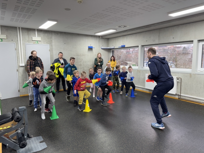 Po vyřízení formalit si děti od rodičů převzal předseda klubu Michal Holánek. V tělocvičně pro ně připravil zábavný off-ice trénink, jehož cílem bylo nejen protáhnout děti, ale také jim ukázat základní pohybové dovednosti.